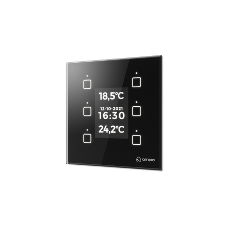 Moduł włącznika dotykowego jest składnikiem systemu Ampio Smart Home i może służyć do załączania dowolnych urządzeń / oświetlenia podłączonego do systemu inteligentnego domu, informowania o stanie urządzenia / oświetlenia (załączone / wyłączone), za pomocą wyświetlacza LCD - wyświetlania danych z czujników tj. nazwa RDS stacji radiowej, czas oraz inne dane z modułów inteligentnego domu